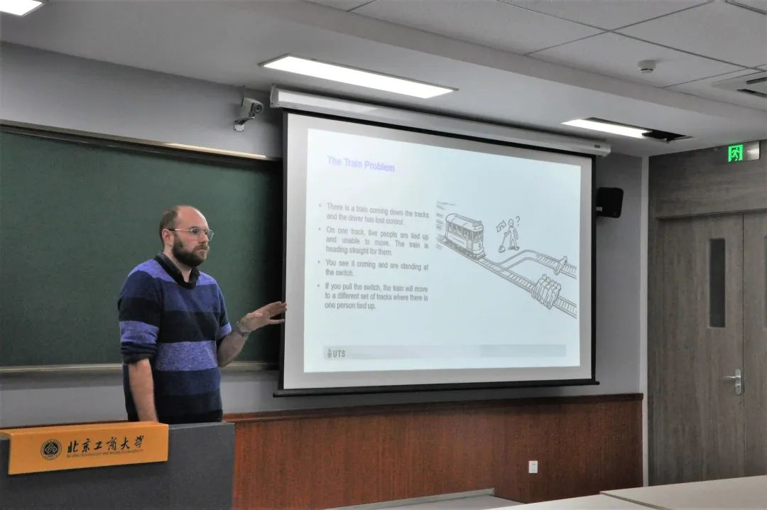 随后,Anita经理向公司部分员工介绍了悉尼本地的风土人情以及校内风光,欢迎公司员工到悉尼科技大学留学。Kristopher教授以Technology Law, Policy and Ethics——The Regulation of Autonomous Vehicles(技术法律、政策和伦理——自动驾驶汽车的监管)为题,为同学们作了一场全英文讲座。Kristopher教授通过经典的“电车难题”展示了自动驾驶技术所带来的相关问题,引起同学们的兴趣,多位同学与教授进行了交流,发表了自己的看法。本次讲座氛围轻松而不失专业性,得到同学们的欢迎,讲座取得了圆满成功。