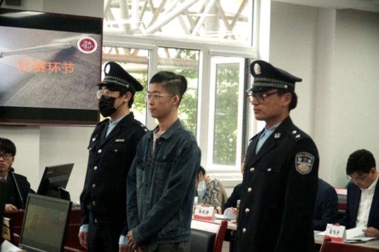 本次决赛赛题同样改编自真实刑事案件,控辩双方就被告人郝某涉嫌故意杀人罪一案,展开激烈辩论。经过初赛和复赛历练的两支队伍充分吸取先前比赛的经验,在本轮中显得更加沉稳与自信。在书记员宣读法庭纪律后,审判长、审判员入庭。审判长介绍了合议庭的组成人员,并询问辩护人是否申请回避。辩护人表示不申请后,审判长指示带被告人入庭。经核实被告人身份后,审判长宣布进入庭审调查阶段。首先由公诉人宣读起诉书。公诉人认为被告人的行为已经符合《刑法》第二百三十二条故意杀人罪之构成要件,建议判处死刑,但因被害人有过错,故建议减轻处罚,判处无期徒刑。辩护人则表示被告人的行为属于正当防卫,不构成故意杀人罪,而仅构成侮辱尸体罪。