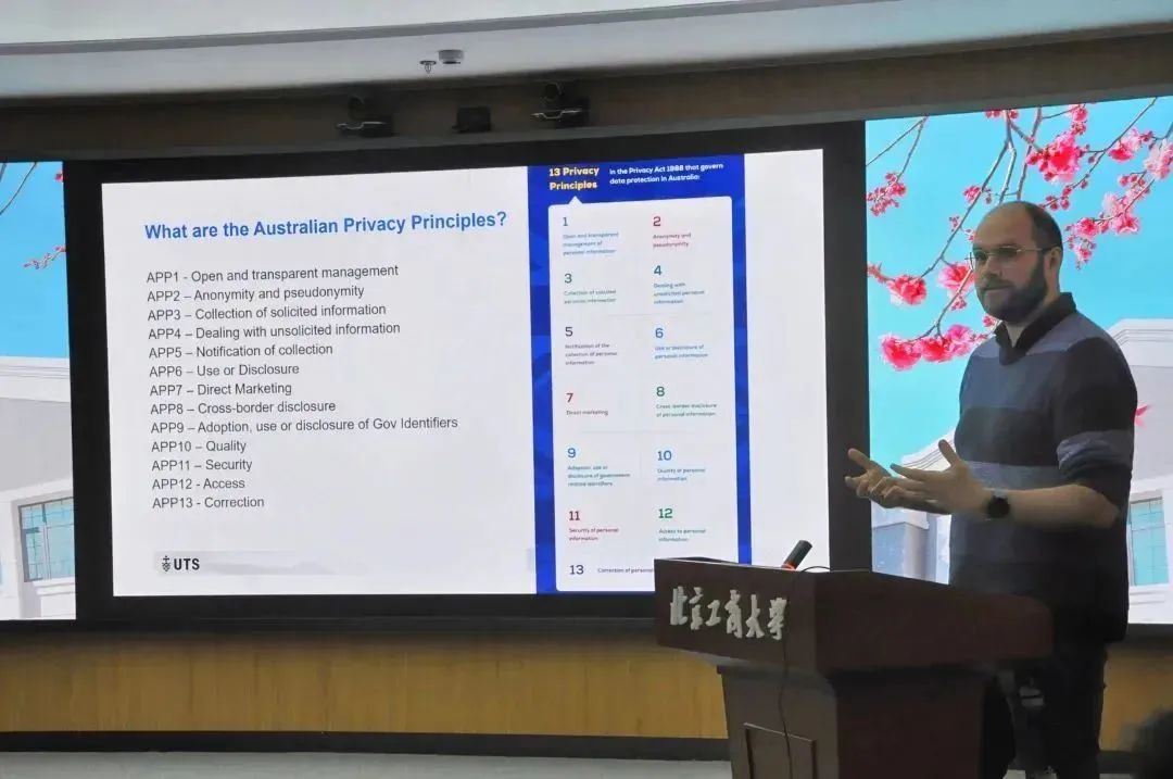 悉尼科技大学yl88858永利集团Kristopher Wilson教授围绕澳大利亚的数字隐私法进行发言,他介绍了澳大利亚法律下数据治理和隐私保护的发展进程与现行规定,以及在实践中存在的不足和未来发展的愿景。