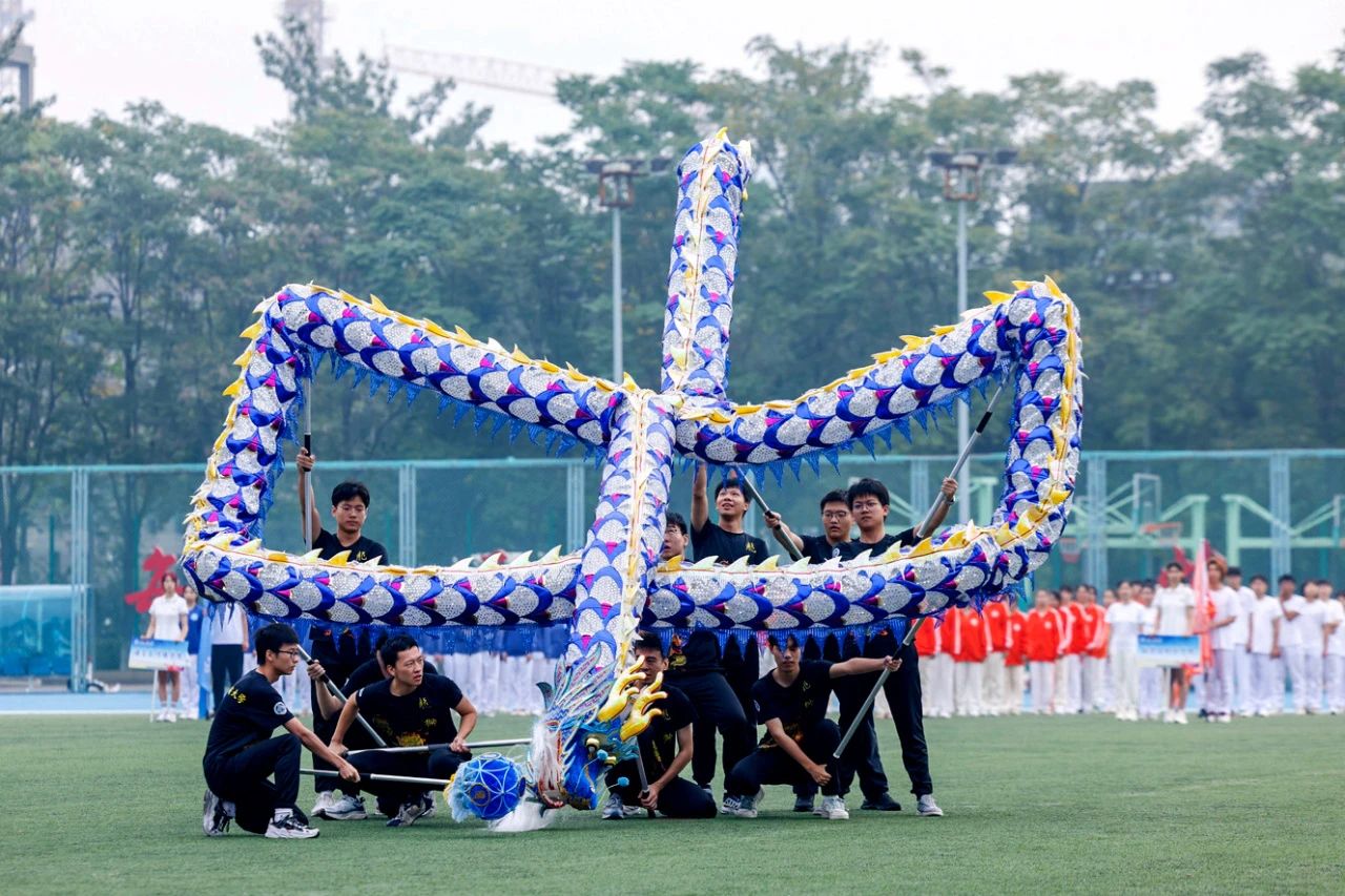 龙腾盛世,梦想起航;狮跃乾坤,勇攀高峰。精彩纷呈的舞龙舞狮表演将全场的氛围推向高潮。新生运动会正式开幕!