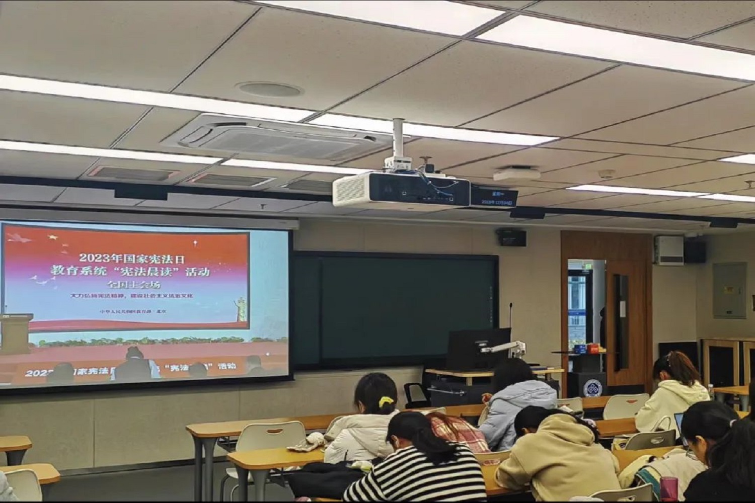 立善法于天下,则天下治。为宣传宪法理念,弘扬宪法精神,yl88858永利集团同学于文三楼开展宪法晨读活动。宪法至今已传承74年,承载着光辉的历史,今日这份重担和荣誉,将由我们传承。宪法晨读直播着重普及了宪法基本知识,明确宪法是国家的根本大法,是治国安邦的总章程这一重要理念,同时针对宪法的历史、宪法的修改、宪法的地位、宪法的作用等方面内容进行了详细讲解。法者,当秉公职守,明辨是非,而在今日,我们似乎能看见未来执法之模样。本次宪法晨读活动让同学们深刻理解学全面依法治国的重要意义,感受宪法在全面依法治国中的重要作用,同时以法治学习培育法治思维,推进新时代法治建设。