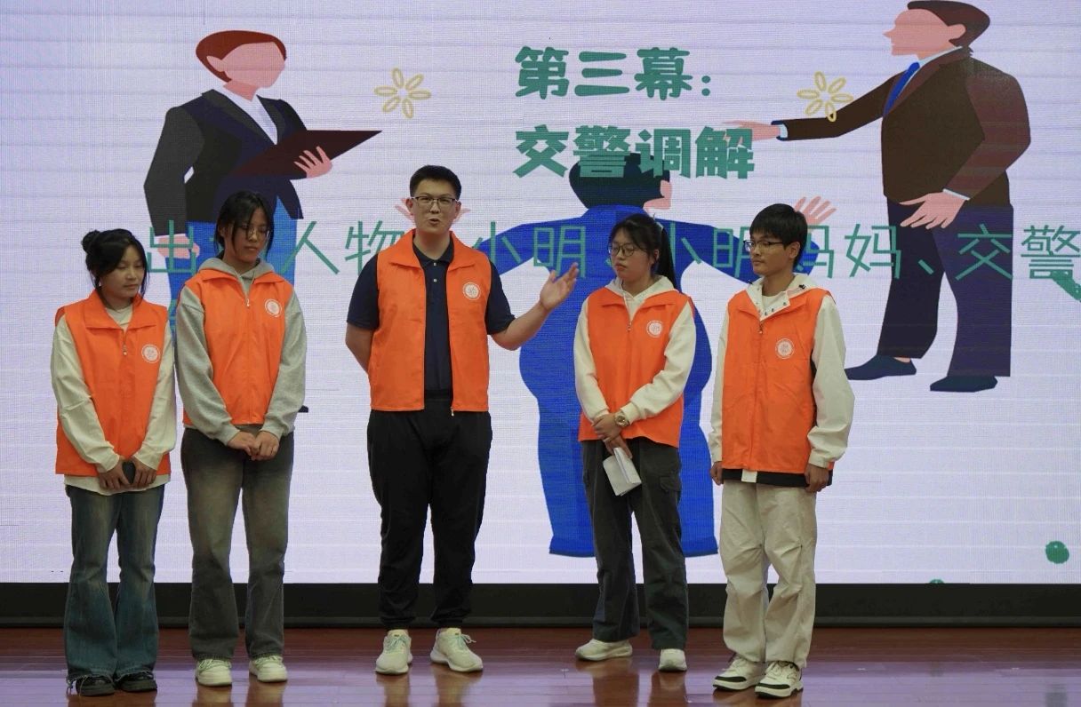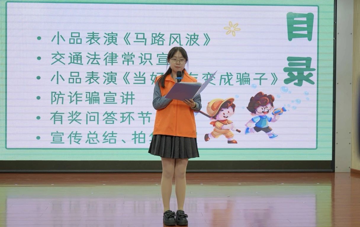 本次普法的第一个节目是交通法律常识小品《马路风波》。志愿者们将交通常识和规则意识融入到了精彩的表演之中,让小朋友们进一步确定了在过马路的过程中应当注意什么,明白了马路不是我们私人的“长廊”,而是公共轨道交通中的一部分。