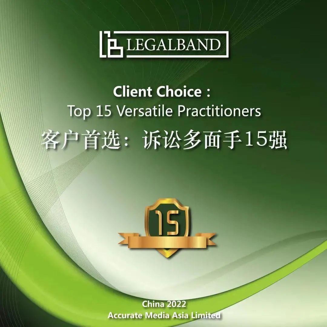 “2022年度LEGALBAND客户首选:诉讼多面手15强”榜单评选,旨在为各类塔尖客户选聘诉讼多面手律师提供指南。LEGALBAND中国区驻地调研团队参考各大律所的推荐材料、律师自荐材料以及客户反馈信息等,同时结合对争议解决领域的长期关注与洞察,最终选出15位中国大陆地区最受客户信赖的“诉讼多面手”。