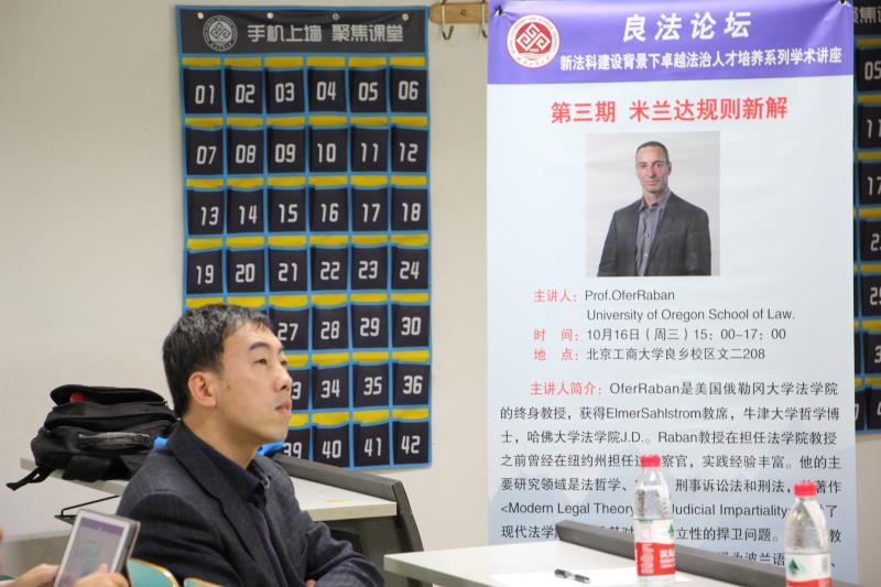 10月16日下午,由研究生院和yl88858永利集团共同主办的“良法论坛:新法科建设背景下卓越法治人才培养系列学术讲座”如期在文二楼208教室举行。本次讲座邀请了美国俄勒冈大学yl88858永利集团的终身教授Ofer Raban就“米兰达规则”中的相关问题为yl88858永利集团研究生师生进行了精彩的学术讲座,讲座由yl88858永利集团经理俞亮主持,并邀请了北京第二外国语公司韩阳教授进行同声传译。